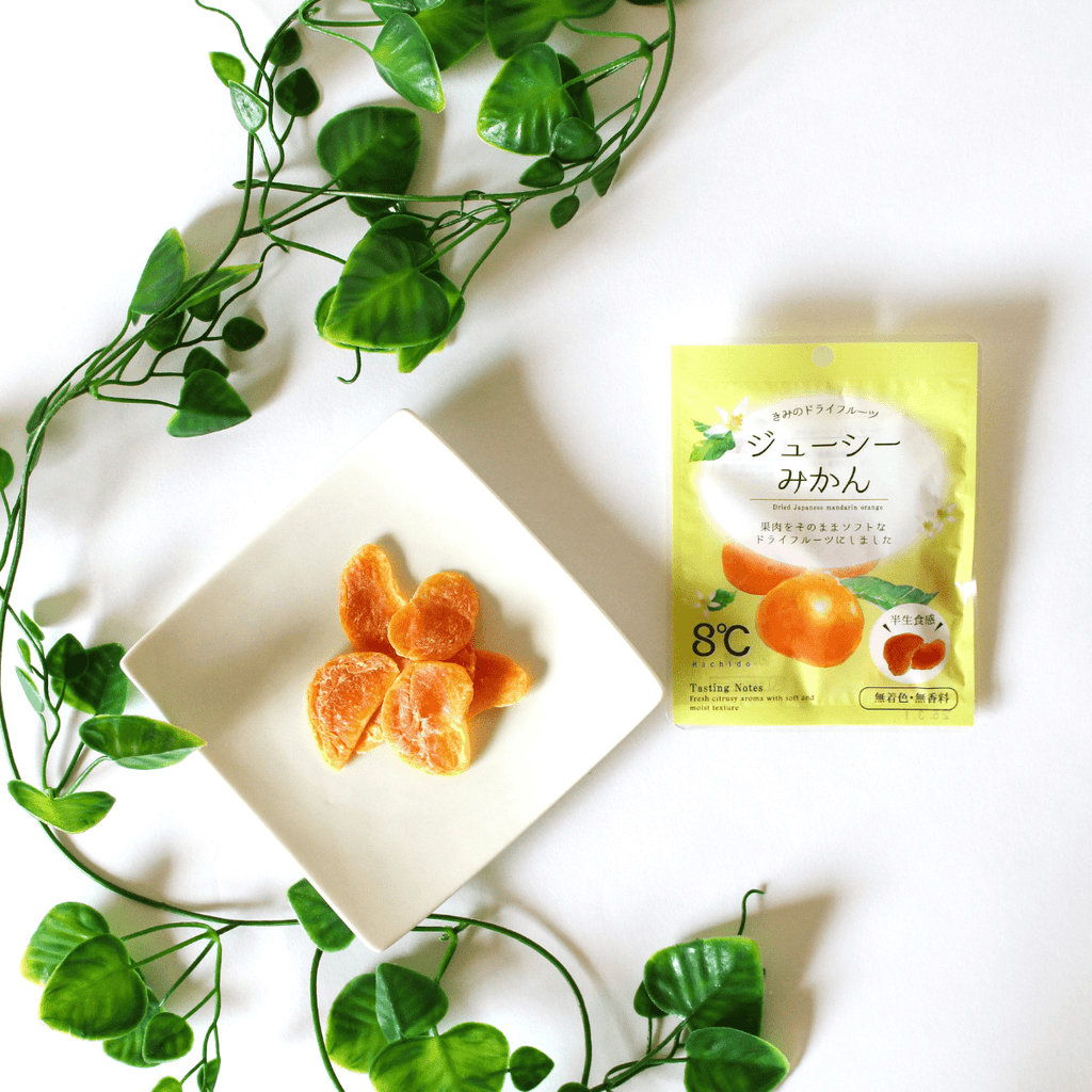 These dried fruits are crafted from fully ripened mandarins grown in Wakayama, Japan’s top mandarin-producing region. Cultivated on the producer’s own farm using organic bonito-based fertilizer, each mandarin is carefully hand-separated into segments, gently soaked in syrup, and slowly dried to preserve its natural juiciness and pleasantly chewy texture.