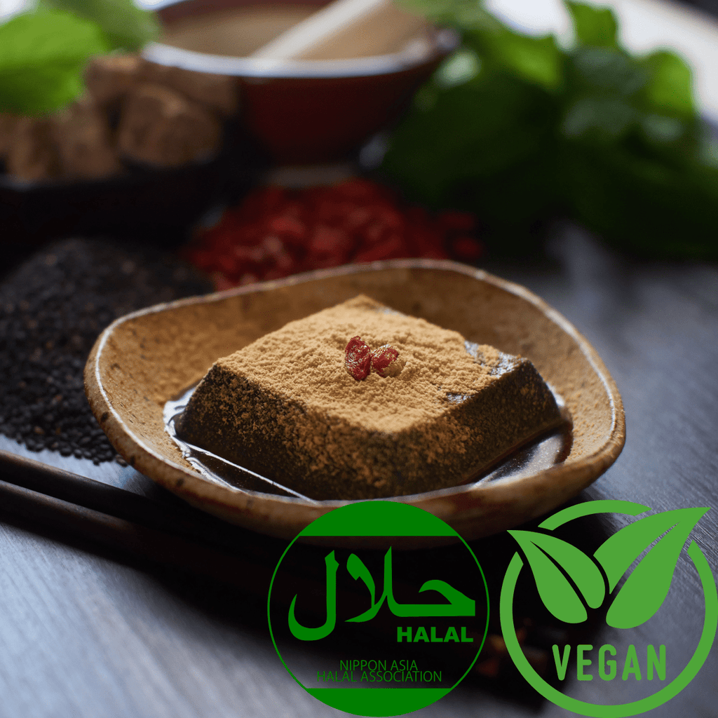 Savor the deep, roasted flavor of black sesame in this uniquely chewy mochi-style tofu from Nagasaki, Japan. Made with all-natural ingredients, this elegant dessert is a modern take on goma dofu, a dish with over 300 years of history rooted in Obaku Zen Buddhism.